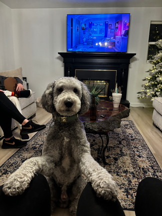 After dinner (I had a shrimp and mushroom risotto, yummm) and cocktails, we went to buy fleeces inspired by Brandon, and he kindly invited us over to meet his dog (Becky and I love dogs and both have Cockapoos) I mean we were there to see you too Brandon, but mainly Oliver lol.